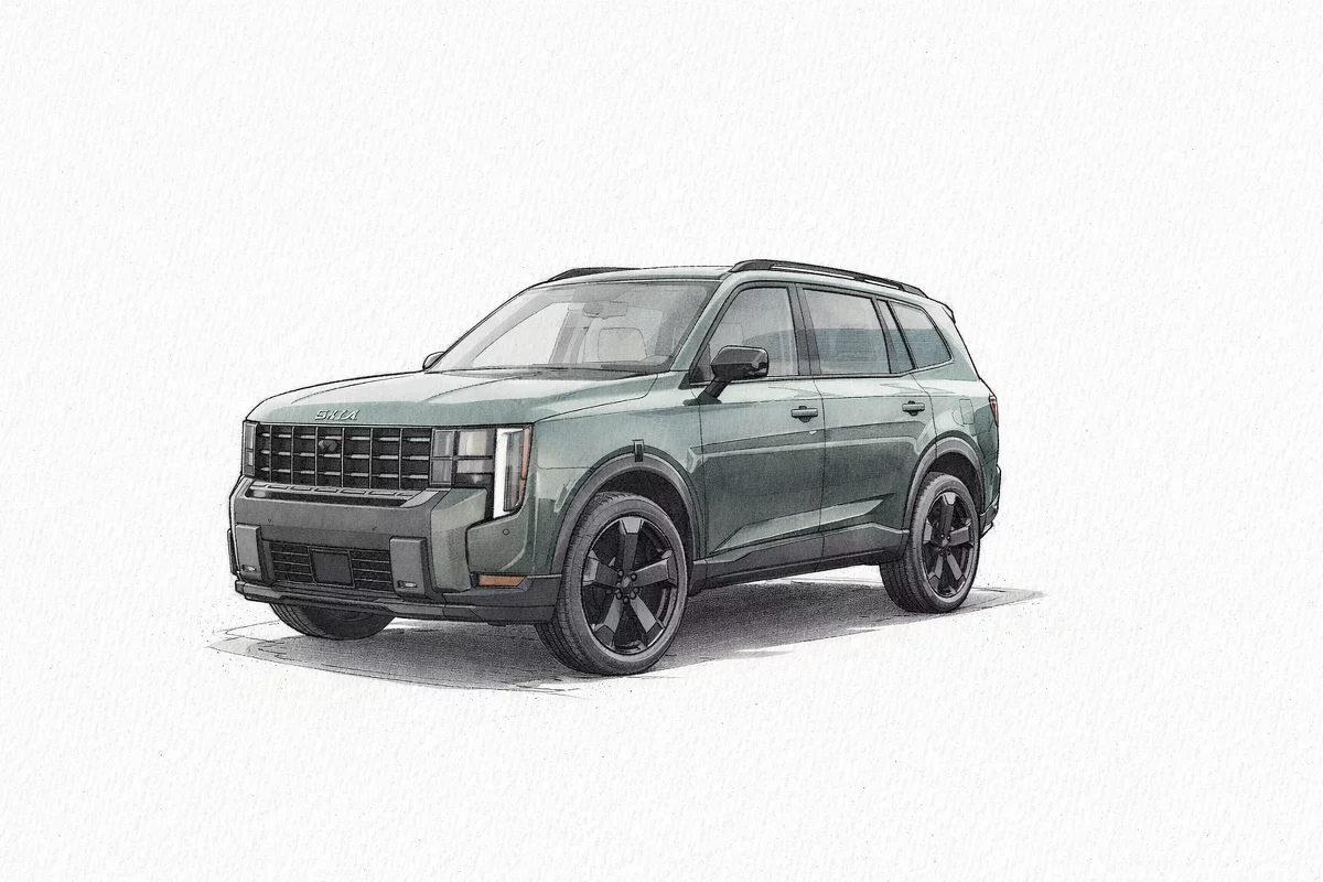 Meet the 2027 KIA Telluride X-Line EX in striking black on black — a bold, family-ready SUV that blends rugged capability with refined comfort. Standard AWD, advanced traction and stability control, ABS and a full suite of airbags give you confidence on every road, while run-flat tires and locking/limited-slip differentials ensure grip when it matters most. Inside, enjoy true premium touches: heated and cooled power front seats, leather heated steering wheel, navigation, power sunroof and dual-zone climate with remote start so every drive is tailored and comfortable. Add keyless entry, anti-theft protection and a spacious three-row cabin for seven — stylish, safe and built for real life. Stop by today and let me show you why the Telluride X-Line EX is the complete package.