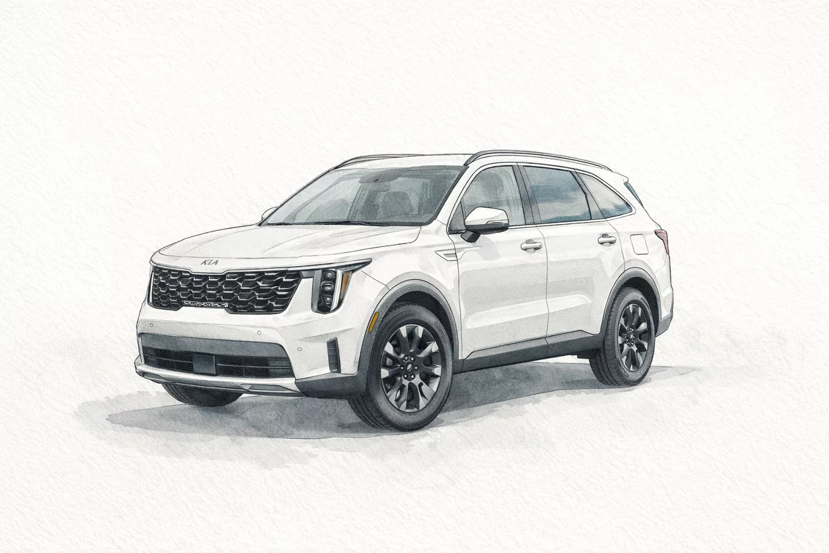 Meet the 2026 KIA Sorento S — a sharp White exterior matched with a sleek Black interior, built for family comfort and confident driving.