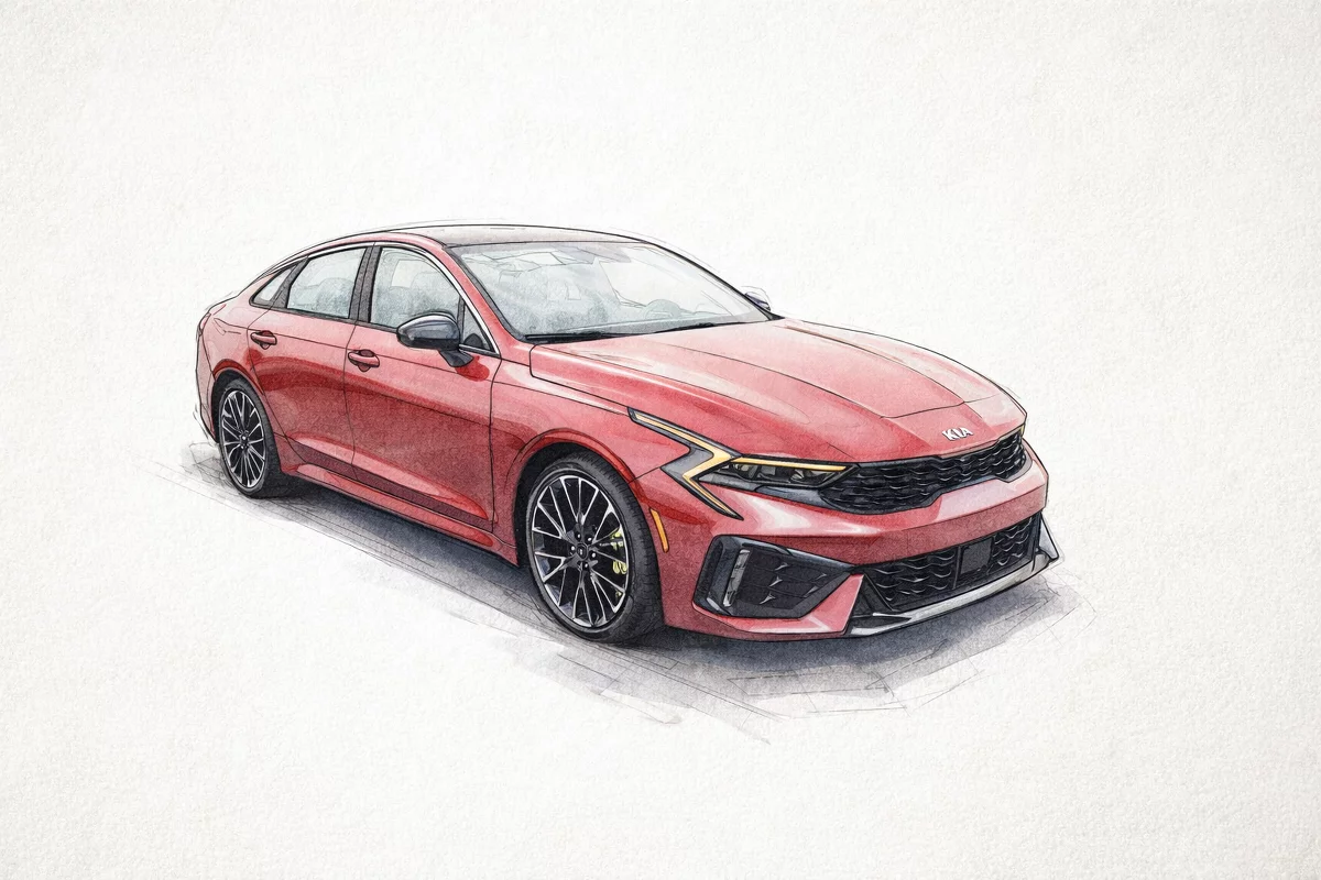 Turn heads in the striking Red 2026 KIA K5 GT — a performance-minded All-Wheel Drive sedan with a bold Black interior and athletic details like 245/40R W performance tires, limited-slip differential, and four-wheel ABS with electronic brake assist for confidence in every corner. Enjoy premium comfort and tech: heated & cooled front seats, heated leather steering wheel, power sunroof, navigation, keyless entry with remote ignition/climate control, and a full suite of safety systems including multiple airbags, traction and stability control, and vehicle anti-theft. Room for five, precise independent suspension, and a long factory peace-of-mind warranty (60 months/60,000 mi basic, 120 months/100,000 mi powertrain, 60 months/100,000 mi rust). Ready to experience it? Call or stop by today for a test drive — this K5 GT is built to thrill.